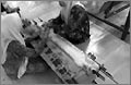 Picking up the pattern by inserting long stick—line by line using draft paper as guide.